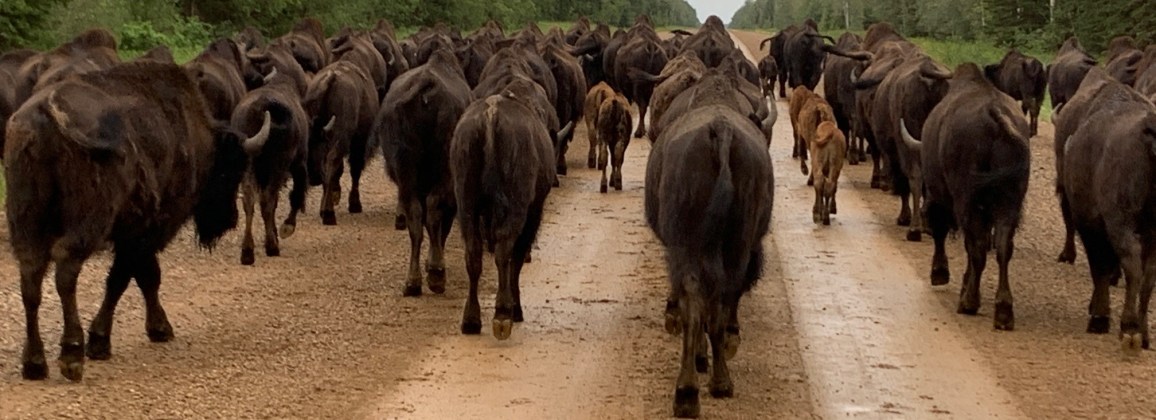 The Hay-Zama wood bison reintroduction program started in 1983 as a joint effort among the Canadian Wildlife Service, Dene Tha’ First Nation and Alberta Environment and Parks to re-establish a sustainable population of wood bison in northwestern Alberta. A herd of 29 animals from Elk Island National Park was moved to a paddock in the Chateh area. Originally the herd was supposed to be released in 1988, but was postponed due to the concern around disease transference from the Wood Buffalo National Park (WBNP) Population. In 1993 the Bison escaped the paddock and in 1994 a Hay Zama “Bison Protection Area” was created to help manage the herd and protect it from the diseased Bison of WBNP. Wood Bison are considered Endangered under Alberta’s Wildlife Act and Regulation. Alberta has conducted annual surveys since the original release of 42 bison. By 2008, based on a minimum count, the population had expanded to 652 bison. Surveys are extensive, with over 3,500 kilometres flown during a survey season. Locals and travellers also assist Wood bison with location reports and health issues.