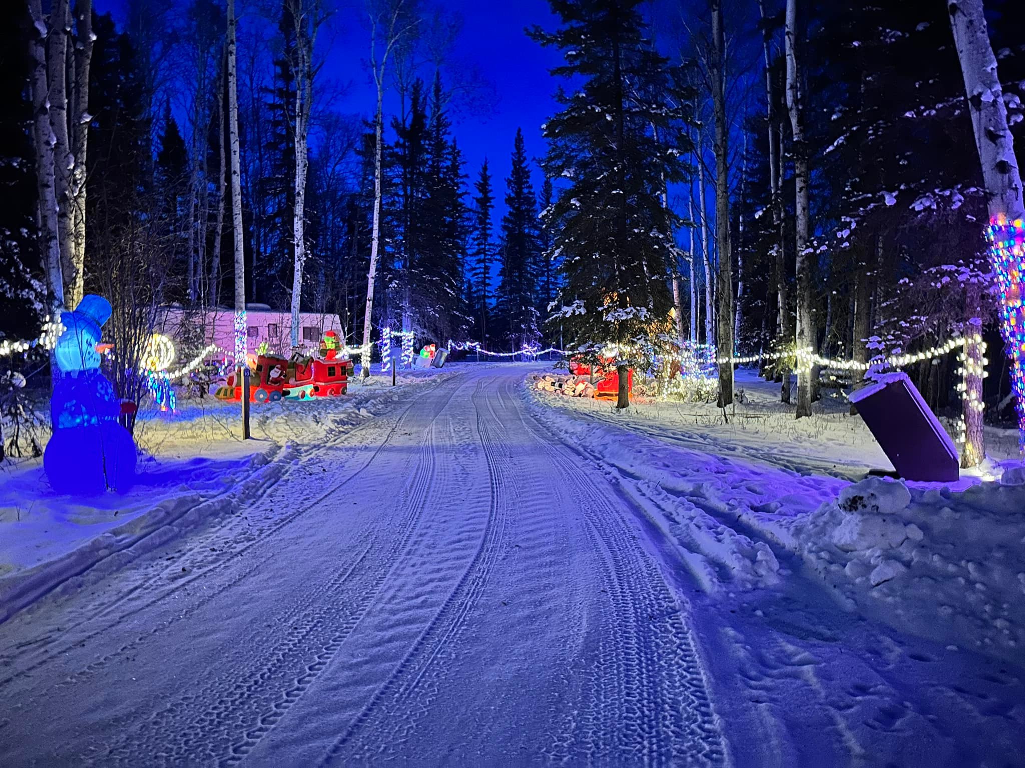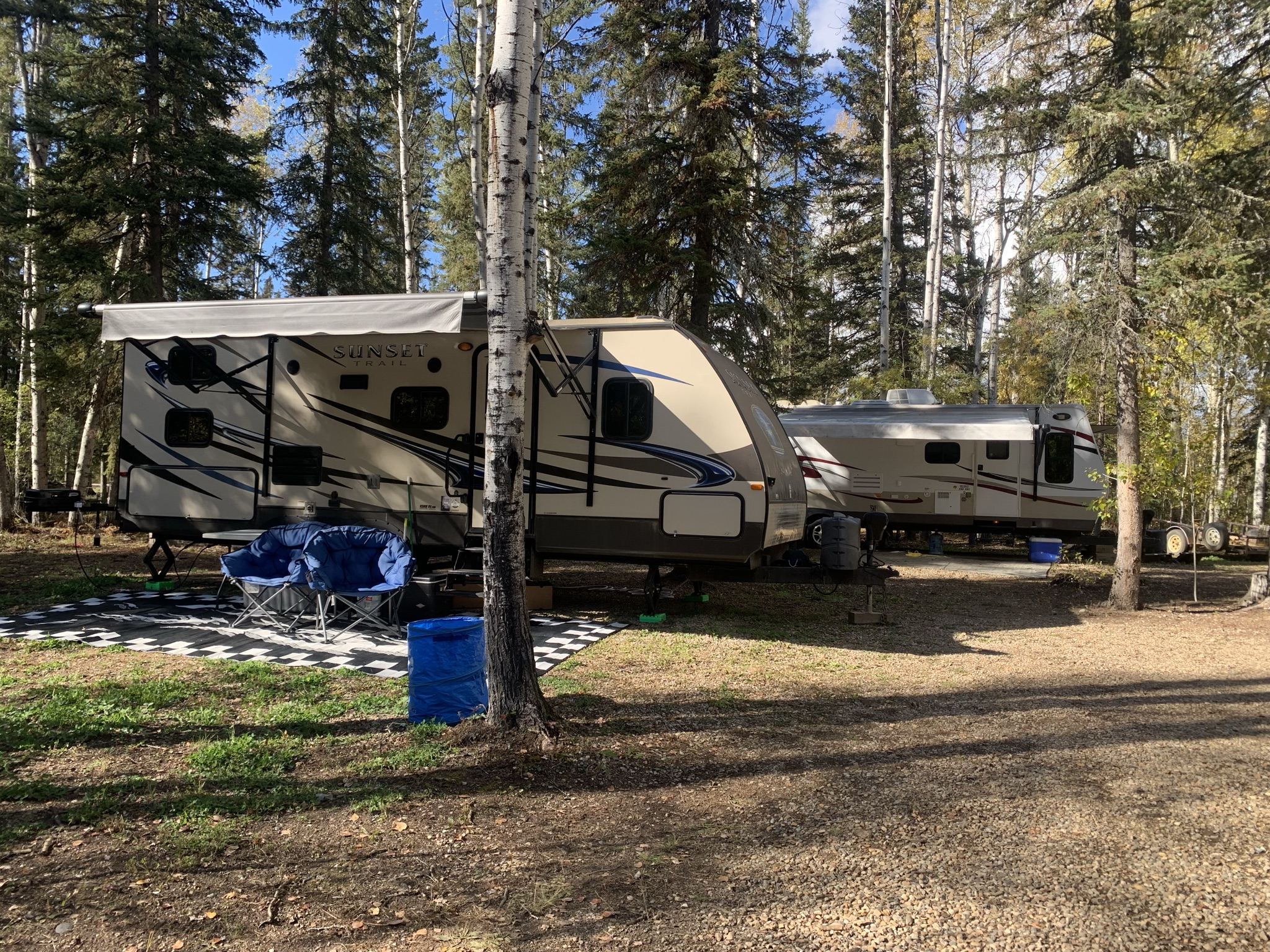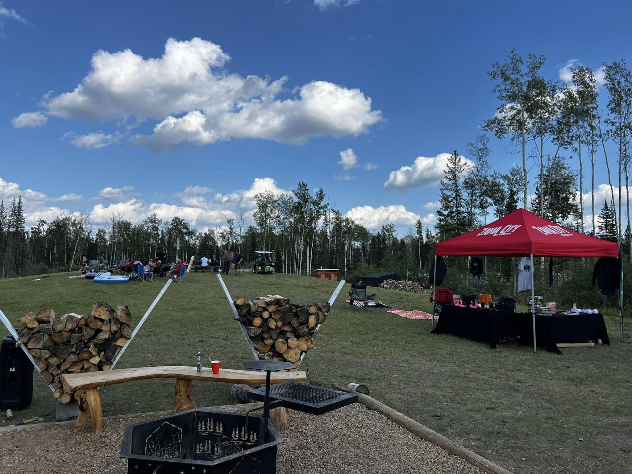 We are an ATV friendly community, so feel free to bring your machines and explore the area. Coin (loonie) operated showers, laundry (2025) playground, horseshoes, picnic shelter, Alberta’s most northern disc golf course (listed on udisc.com). We have two types of sites available… more intimate back-in treed full-serviced sites, larger drive through full-serviced full serviced sites with lots of room to park.