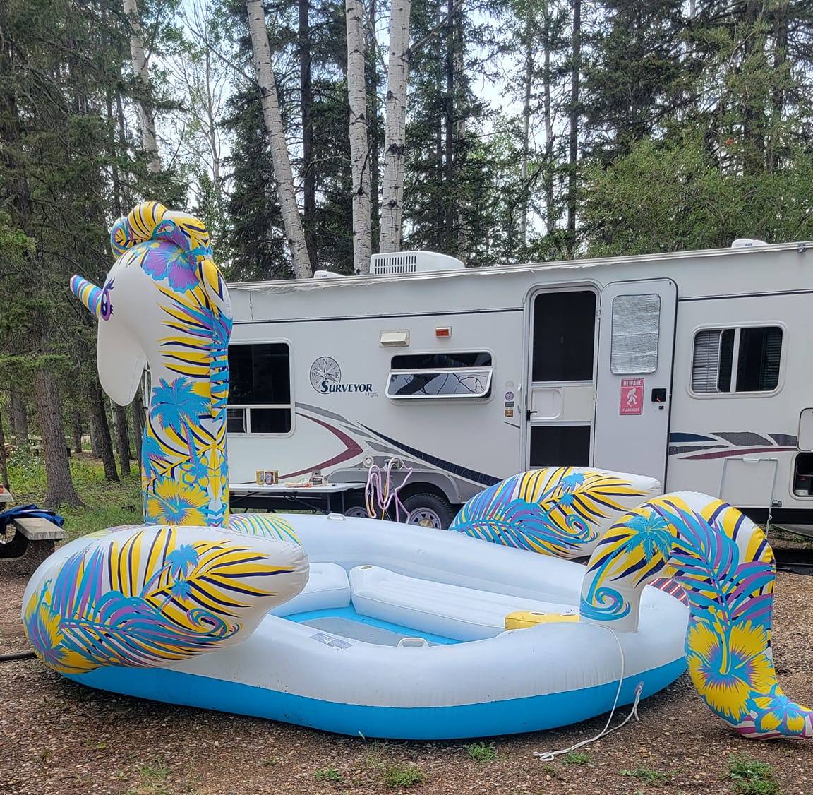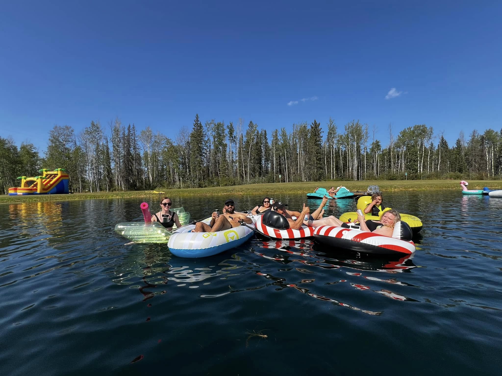In 2024 we added a Giant Swim Slide to the pond… and hosted our 1st Ever Float Fest! Float Fest is returning in 2025 on August Long Weekend.