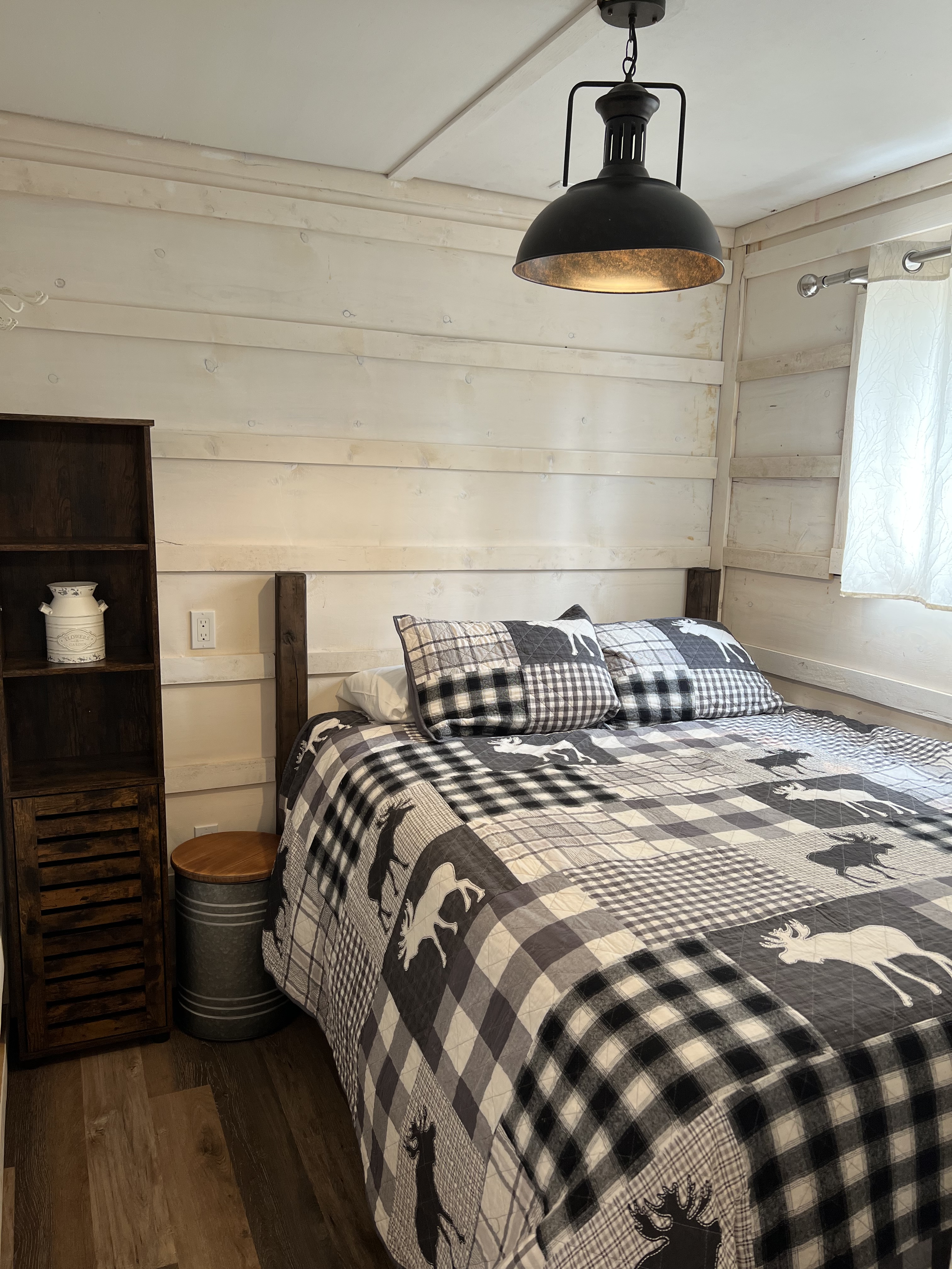 Two glamping cabins were added in 2021, and a Rental Bunk Model RV in 2024! All you need is food and your bedding and loonies for the shower!